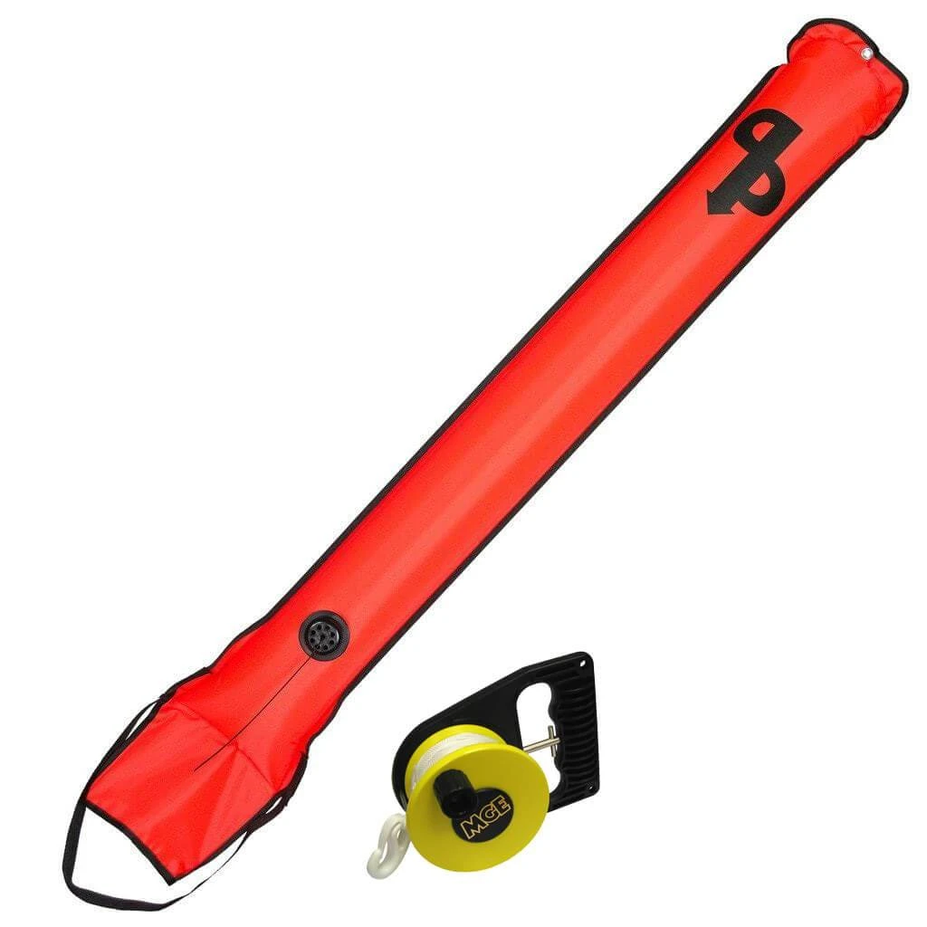 This Reel and Delayed SMB bundle includes a locking reel and a self sealing SMB for versatile use whether it is for inflating from depth or on the surface.