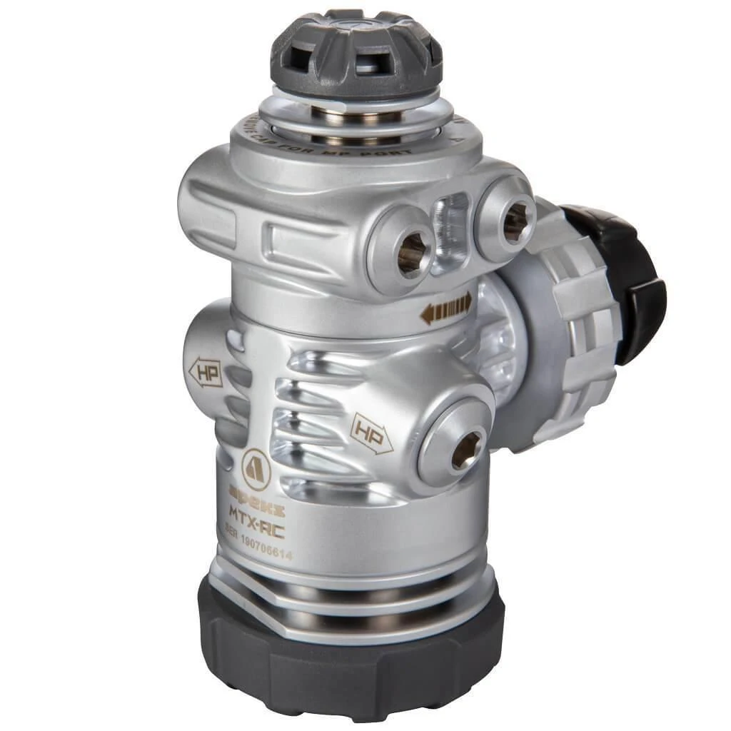The MTX-RC is a modified version of the original MTX-R that was designed to meet the requirements of the United States Navy Experimental Dive Unit extreme cold water test. In order to achieve this tough test the MTX-R is factory tuned with no diver adjustment. Apeks created the MTX-RC to give divers the option of fine-tuning their regulator performance to suit their diving.
