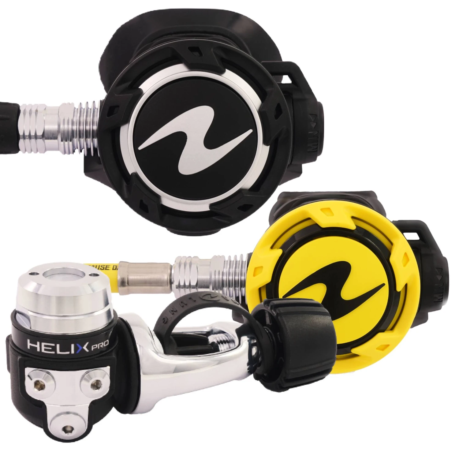 The Aqualung Helix Pro Regulator Set is a medium-range, cold water regulator that is still light enough to be an excellent travel regulator. The new Aqualung Helix Pro Regulator may appeal to all divers looking for an excellent all-around scuba regulator for diving in the UK and away.Â