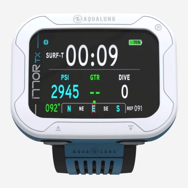 - Hoseless gas integration. Aqualung’s patented Gas Time Remaining Algorithm provides calculations in real-time, allowing accurate gas management.