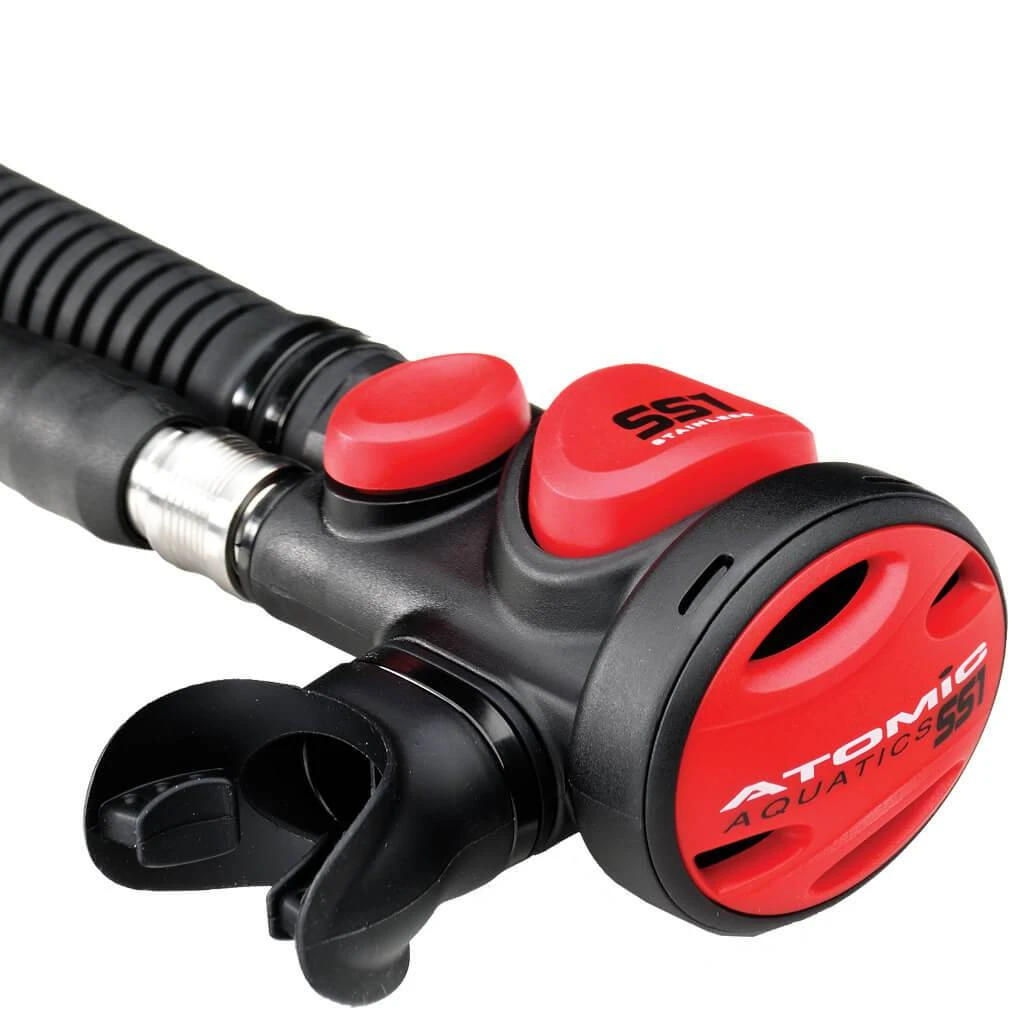 The Atomic SS1 Alternate Air Source is not just a thing of convenience to get rid of a long hose and octopus but a truly high performance second stage and BCD inflator system built into one unit that incorporates Atomic ingenuity and material choice.
