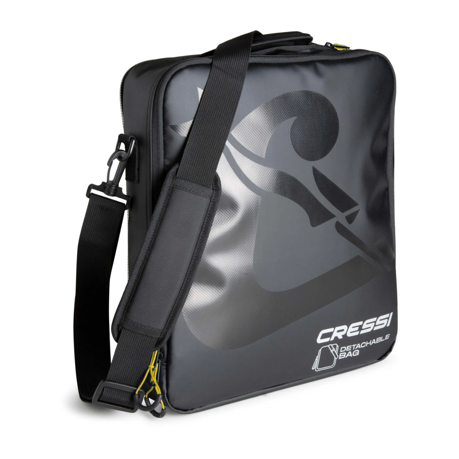 For added convenience, a detachable lower pocket with a concealed hanging strap and thermoplastic side loops for attaching the shoulder strap is included. The inner, lined pocket securely holds the padded shoulder strap. In addition, the Moby 7 has a small front pocket with a semi-dry zip, perfect for storing valuables. As additional equipment, a folding mesh bag with drawstring closure is included, which can be conveniently stored in the small front pocket.