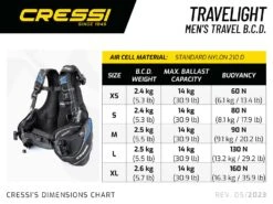 The Cressi Travelight is an ultra-lightweight, versatile, and travel-ready BCD with a traditional wrap-around bladder and harness design. The Travelight folds and packs down into a compact package that is really easy to fit into your luggage.