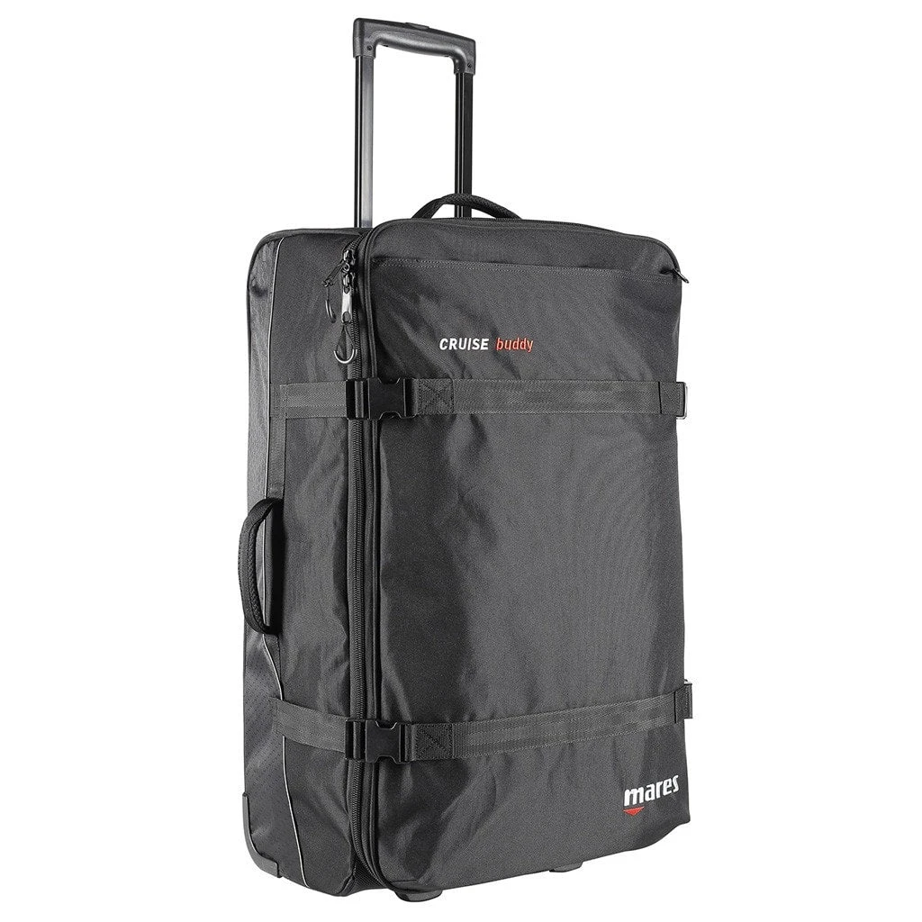 The Mares Cruise Buddy is a wheeled bag optimised for air travel and features everything you would expect in a lightweight wheeled dive bag.