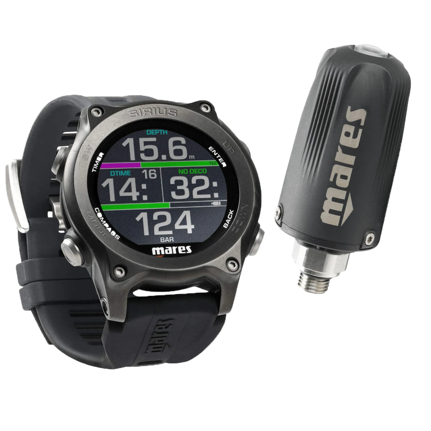 The Mares Sirius is the latest watch-type dive computer designed for recreational, extended range and open-circuit technical divers. This elegant dive watch features a high-resolution MIP colour screen and a choice between three watch faces and different colour schemes, displaying standard dive information for recreational divers to on-the-fly cylinder pressure information from up to five Mares LED Tank Modules 2.0 for open circuit extended range and technical diving.Â