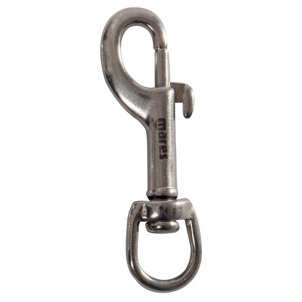 The Mares XR Stainless Steel Boltsnap provides a convenient means of securing items and equipment to a fixed point such as a D-ring, rail or line. The swivelling fixed one at end allows a split ring or line to be attached and the spring loaded bolt immediately snaps back after being released to secure the clip in place.