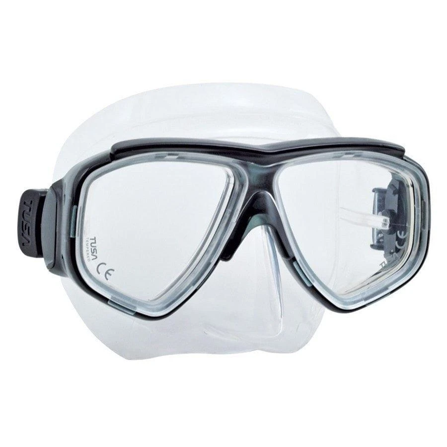The Tusa Splendive II Mask is a lightweight and compact mask with a strong frame and twin-lens design that allows corrective lenses to be fitted in minus, plus and bifocal lens configurations.