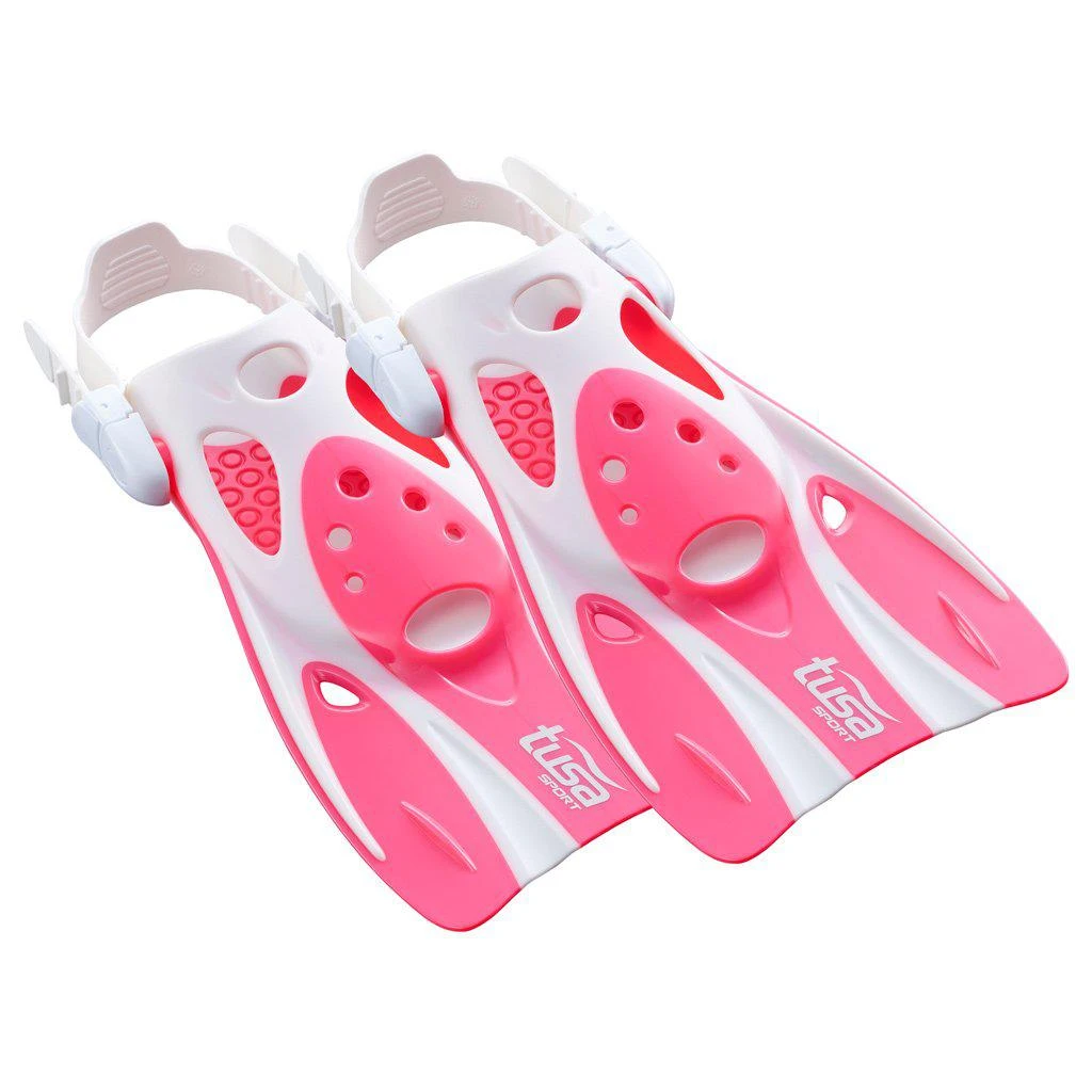 The Tusa Sport Compact Snorkeling Fins are exclusively designed for travel with a short fin design, soft comfortable open-heel foot pocket, and adjustable silicone strap. The open-heel is designed for ease of entry and a secure fit. This sturdy fin is engineered to provide a lot of power for its small size.